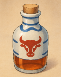 | Beschreibung: Potentes Aufputschmittel in der Gestalt einer bernsteinfarbenen Flüssigkeit. Wird für gewöhnlich in kleinen, blauweiß bemalten Tonfläschchen verkauft, auf denen ein stilisierter Stierkopf in Rot abgebildet ist. Wirkung: Aufputschmittel Nebenwirkung: Schlaf 2 Wirkungsdauer: 24 Stunden / 4 KR Art: Einnahmemittel Standard Vitalitäs-SG: 20 SG | |