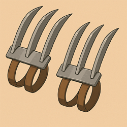 | Beschreibung: Klingen, die hervorragend für den Nahkampf geeignet sind. Entweder sind sie direkt auf dem Handrücken von Handschuhen, oder aber mit Riemen direkt an den Händen befestigt. Itemstufe: 2 Material: Gewöhnlich Wirkung: Leichte Waffe Paar Leichtbau Zusätzliche TP 1 | |