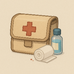 | Beschreibung: Eine experimentelle Pille die im Fall von Schnittverletzungen die Blutgerinnung beschleunigen soll. In den meisten Fällen funktioniert das auch. Wirkung: Blutungsstopp Nebenwirkung: Erhält Schaden für jede Wunde Wirkungsdauer: 24 Stunden / 4 KR Art: Einnahmeheilmittel Standard-SG: 20 SG | |